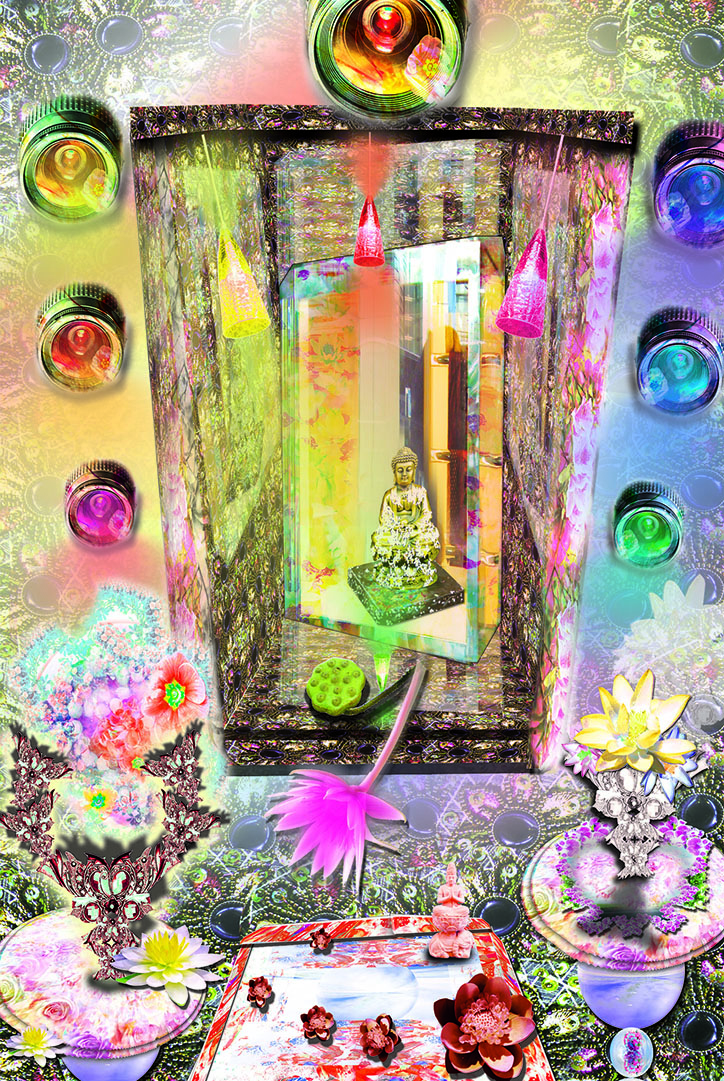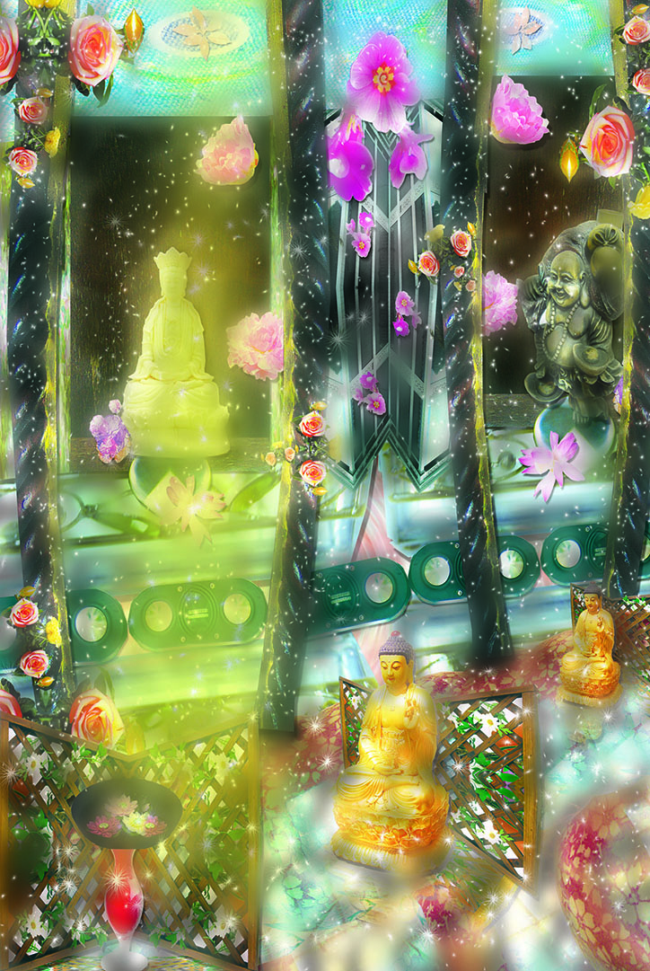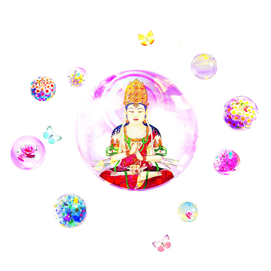 有別於傳統的法相印象,菩薩可以是摩登、具現代風格、如花影迷離般夢幻、如小沙彌生動可愛的意象,融入現代菩薩們的生活日常。